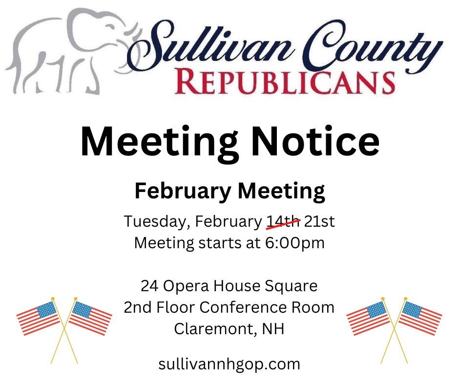 February 2023 Meeting 2/21/23 February 9, 2023July 4, 2024 WebAdmin A short meeting will follow the screening of What is a Woman? which begins at 6:00pm Discover more from The Sullivan County NH Republican Committee Subscribe to get the latest posts sent to your email. Type your emailโฆ Subscribe Share this: Click to print (Opens in new window) Print Click to email a link to a friend (Opens in new window) Email Click to share on Facebook (Opens in new window) Facebook Click to share on X (Opens in new window) X Like Loading... Related Published by WebAdmin View all posts by WebAdmin