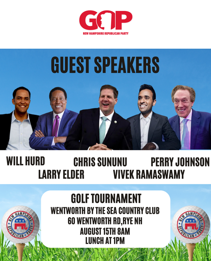 NHGOP Golf Tournament 8/15/23 July 26, 2023July 4, 2024 WebAdmin TICKETS & INFORMATION Discover more from The Sullivan County NH Republican Committee Subscribe to get the latest posts sent to your email. Type your emailโฆ Subscribe Share this: Click to print (Opens in new window) Print Click to email a link to a friend (Opens in new window) Email Click to share on Facebook (Opens in new window) Facebook Click to share on X (Opens in new window) X Like Loading... Related Published by WebAdmin View all posts by WebAdmin