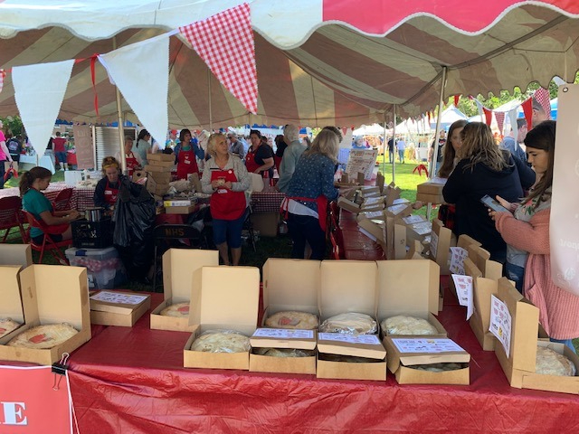 NEW this year! Drive-by pie drop off on Park Street! Drive down to the middle of Park Street near the big red and white tent, and pull into one of the designated pie drop-off spaces on Park Street to drop off your pie right from your vehicle on Saturday morning from 8:00-9:00am. Our volunteers would be happy to help you with your donation.