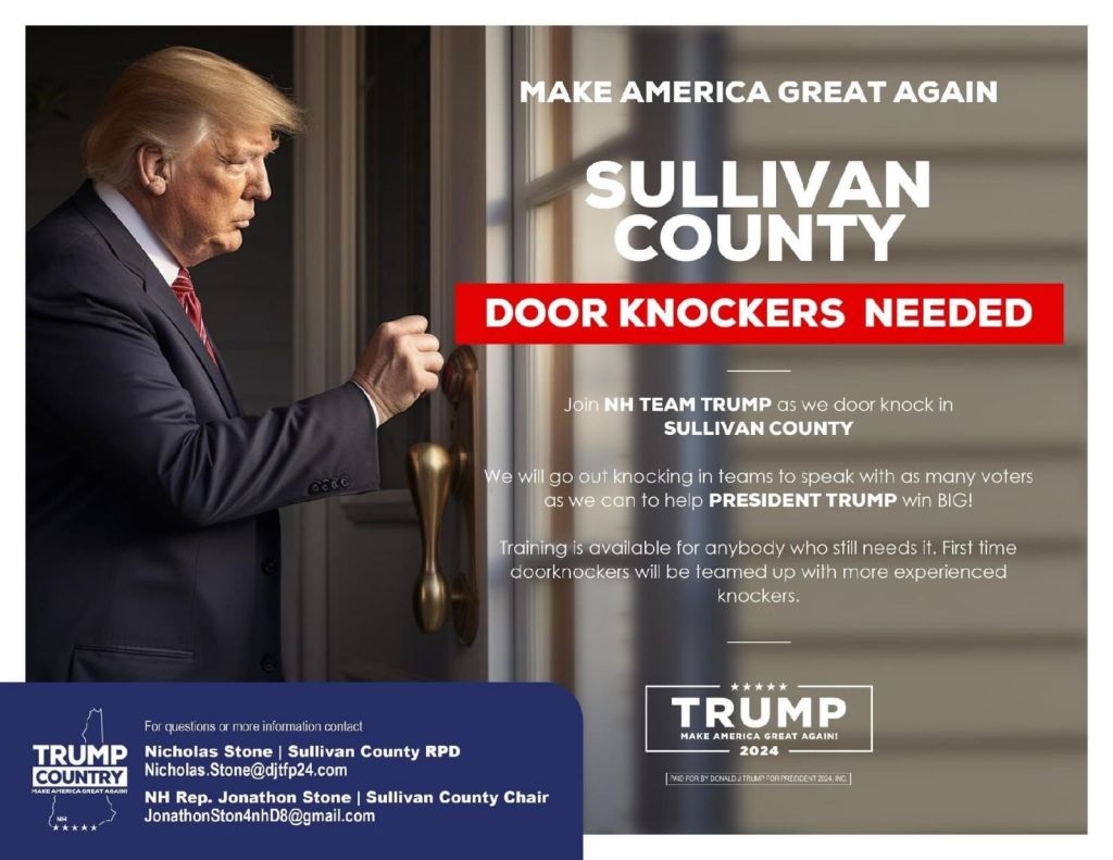 If you are interested in helping with door knocking, please contact one of the New Hampshire Trump Team members below: