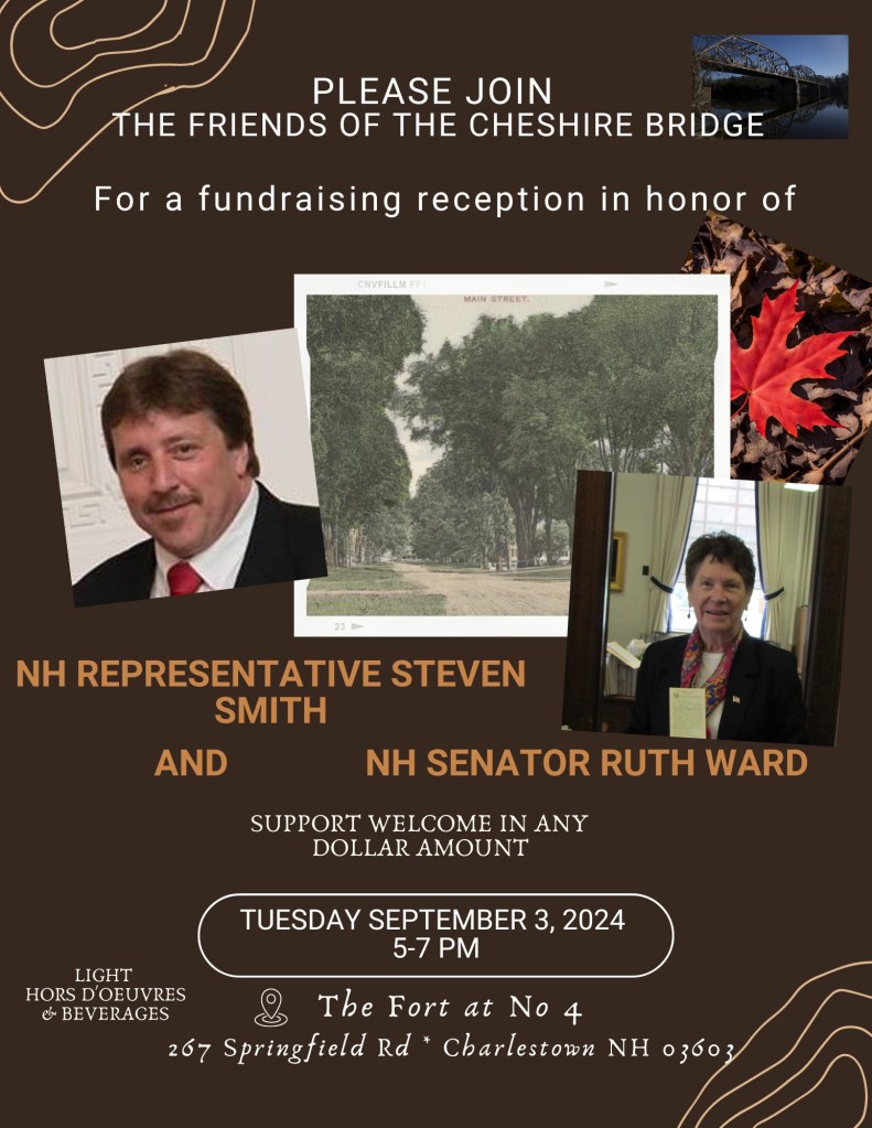 The Friends of the Cheshire Bridge Fund Raiser August 30, 2024 Kevin Tyson Discover more from The Sullivan County NH Republican Committee Subscribe to get the latest posts sent to your email. Type your emailโฆ Subscribe Share this: Click to print (Opens in new window) Print Click to email a link to a friend (Opens in new window) Email Click to share on Facebook (Opens in new window) Facebook Click to share on X (Opens in new window) X Like Loading... Related Published by Kevin Tyson View all posts by Kevin Tyson