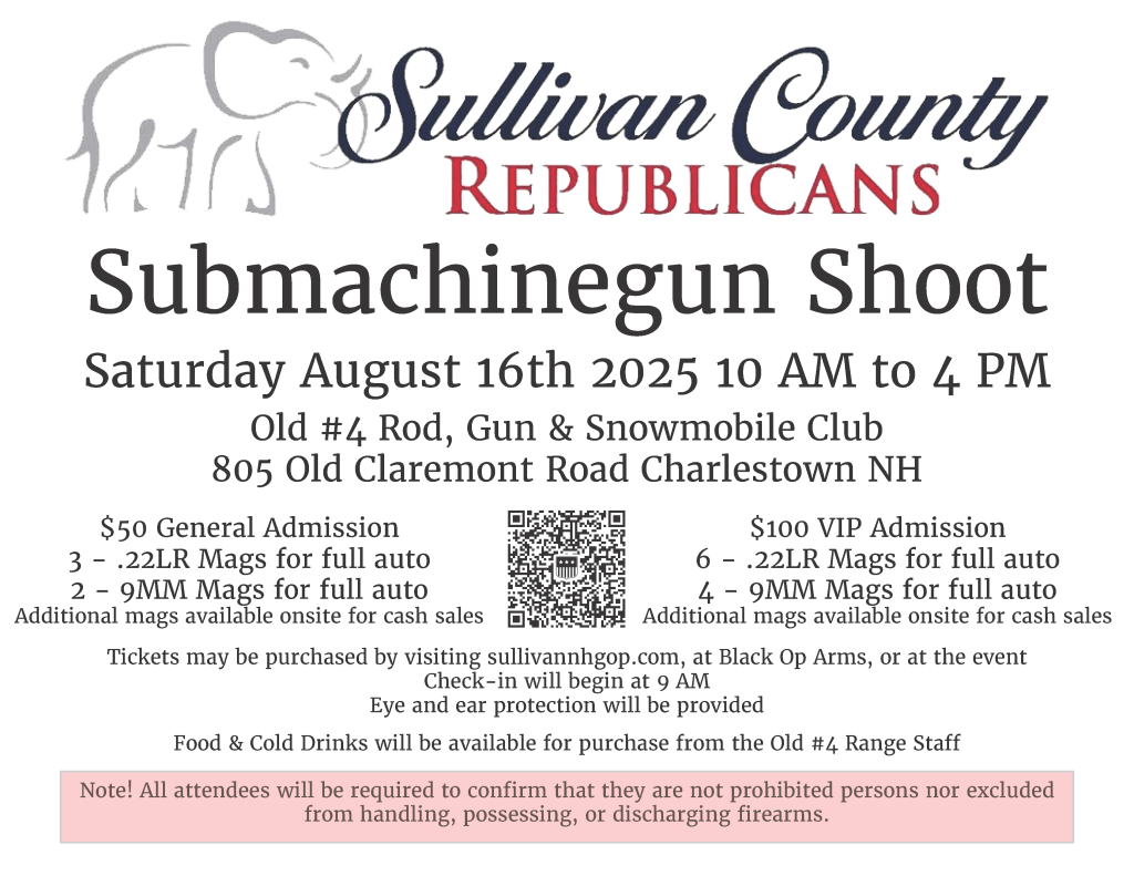 The Sullivan County Republicans are hosting a FUNdraiser! It’ll be a fun day of target shooting with submachine guns at the Old #4 Rod, Gun and Snowmobile Club.