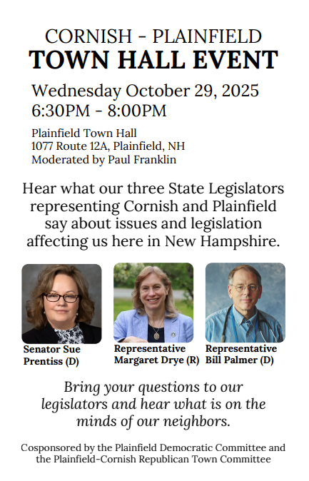 Cornish – Plainfield Town Hall Event September 27, 2025 Kevin Tyson Discover more from The Sullivan County NH Republican Committee Subscribe to get the latest posts sent to your email. Type your emailโฆ Subscribe Share this: Click to print (Opens in new window) Print Click to email a link to a friend (Opens in new window) Email Click to share on Facebook (Opens in new window) Facebook Click to share on X (Opens in new window) X Like Loading... Related Published by Kevin Tyson View all posts by Kevin Tyson