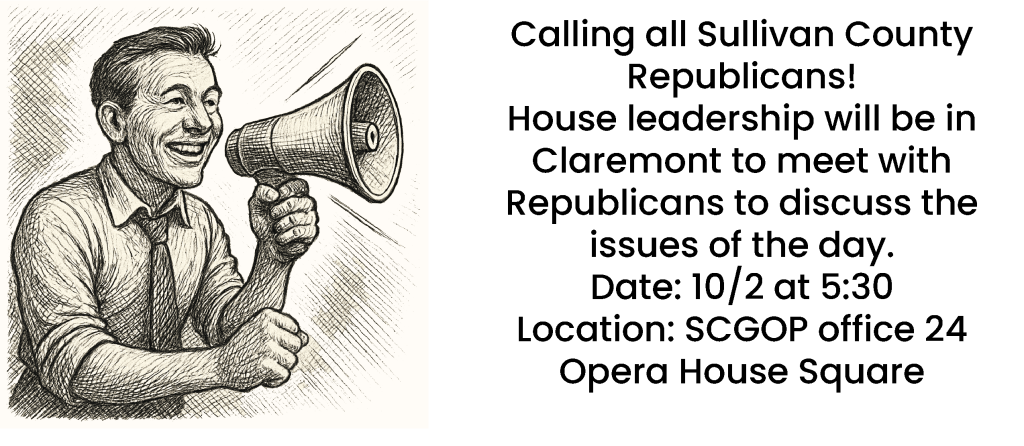 September 29, 2025 Kevin Tyson Discover more from The Sullivan County NH Republican Committee Subscribe to get the latest posts sent to your email. Type your emailโฆ Subscribe Share this: Click to print (Opens in new window) Print Click to email a link to a friend (Opens in new window) Email Click to share on Facebook (Opens in new window) Facebook Click to share on X (Opens in new window) X Like Loading... Related Published by Kevin Tyson View all posts by Kevin Tyson